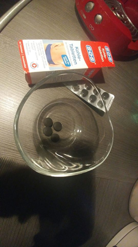 - 4 Kohletabletten (gibt es zum Beispiel bei Rossmann oder dm)