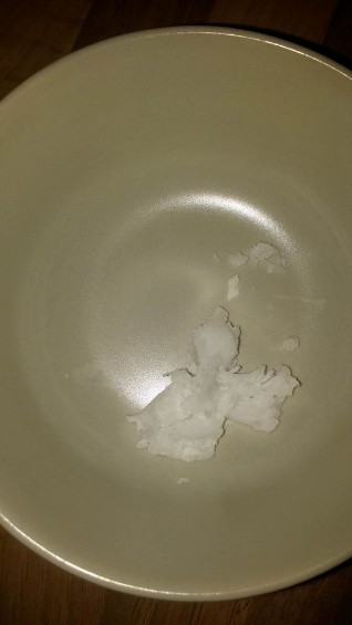 Den Zucker füllt ihr dann in eine der kleinen Schüsselchen. In das andere Schüsselchen kommt je nach Größe eures Tiegels etwas Kokosöl dazu (bei mir war es ein Teelöffel).
